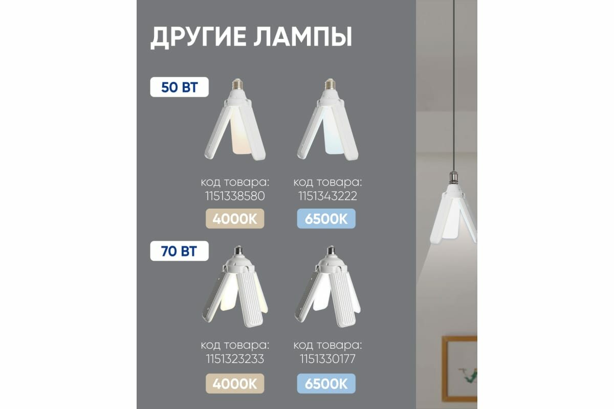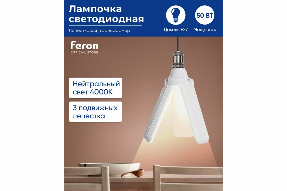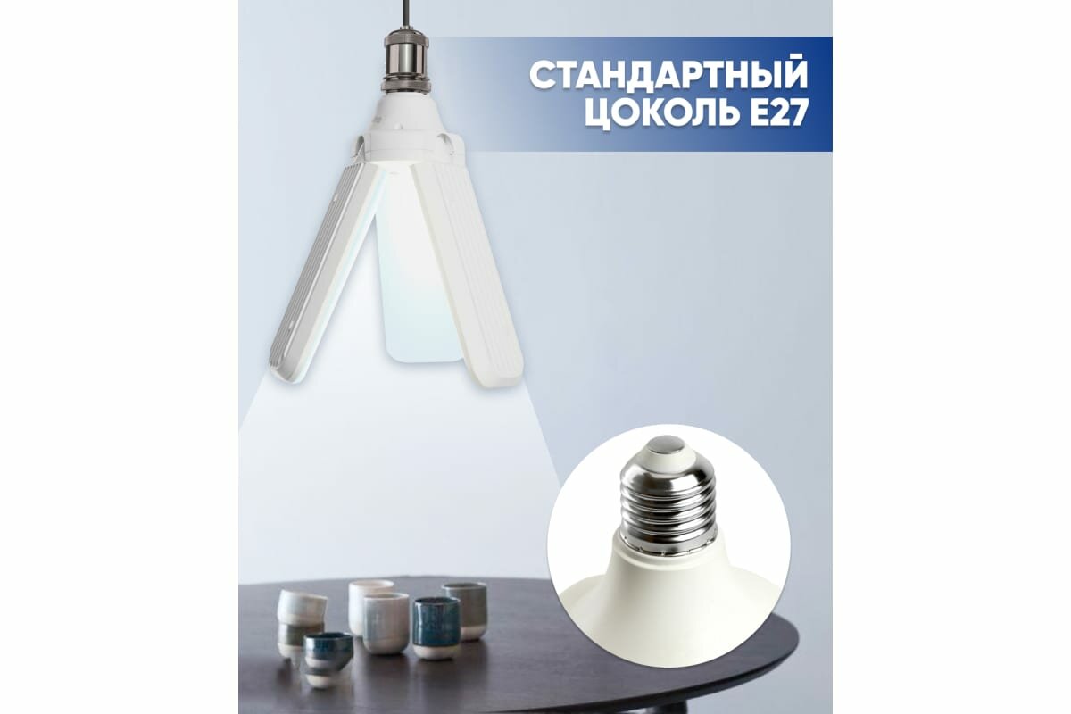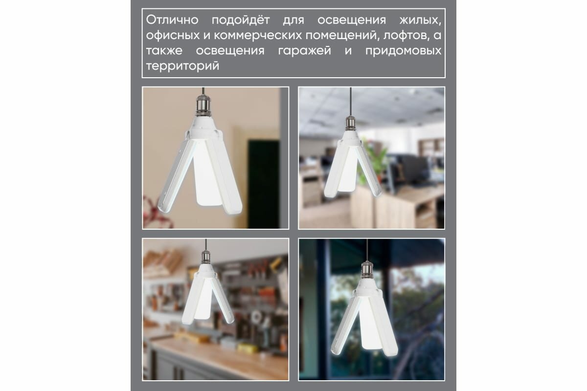 Высокомощные лампы-трансформеры серии LB-653 - оригинальный источник света со складными лепестками. Высокая мощность 50w позволяет получить интенсивное освещение от одного осветильного прибора. Преимущества: • Лепестки-трансформеры позволяют регулировать угол и интенсивность освещения • Корпус лампы выполнен из негорючего пластика • Матовый пластиковый рассеиватель дает мягкий ровный свет • Цоколь E27 делает данную модель совместимой с большинством распространенных осветительных приборов • Гарантия 2 года Сферы применения: подойдёт для офисных, производственных и подсобных помещений, лофтов, а также для освещения гаражей и придомовых территорий.