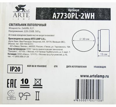 На сегодняшний день товар «Светильник настенно-потолочный ARTELAMP TABLET A7730PL-2WH ARTE LAMP TABLET» можно купить с кешбеком в 1 магазине: Сантехника Тут