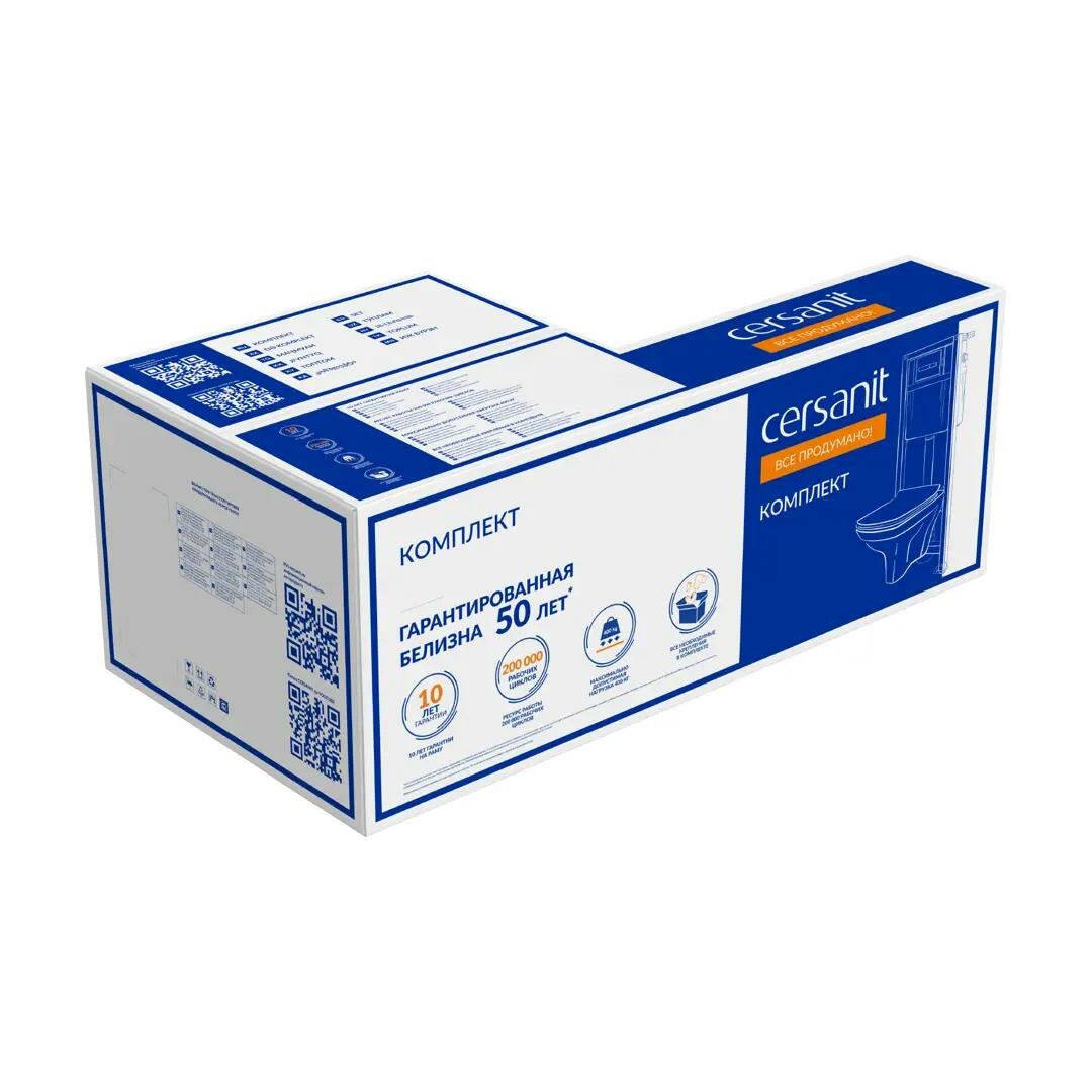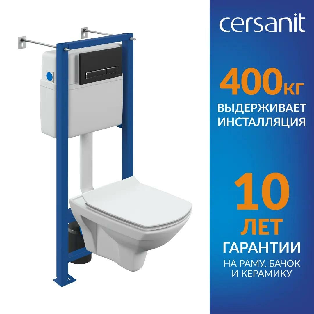 Комплект инсталляция с унитазом Cersanit Carina 68173 безободковый с микролифтом клавиша XL цвет черный матовый