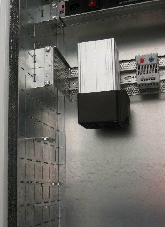 | Особенности | Уровень защиты IP65 (при использовании вентиляции IP54). Металлическая сварная конструкция. Внутри термоизоляционный материал. Дверь шкафа подготовлена для установки вентиляторов моделей МВ-400-2 или МВ-400-2-3, фильтра МВ-Ф. Предустановлена DIN-рейка для установки нагревателей/термореле/гигростата/датчиков. В комплект шкафа входят задняя оцинкованная панель и комплект вертикальных юнитовых панелей 19. Шкаф крепится на стену при помощи 4-х уголков. В основании шкафа предусмотрена съемная заглушка для ввода кабеля. Распределенная нагрузка: 57 кг. Полезная глубина 19 отсека: 420 мм. |
