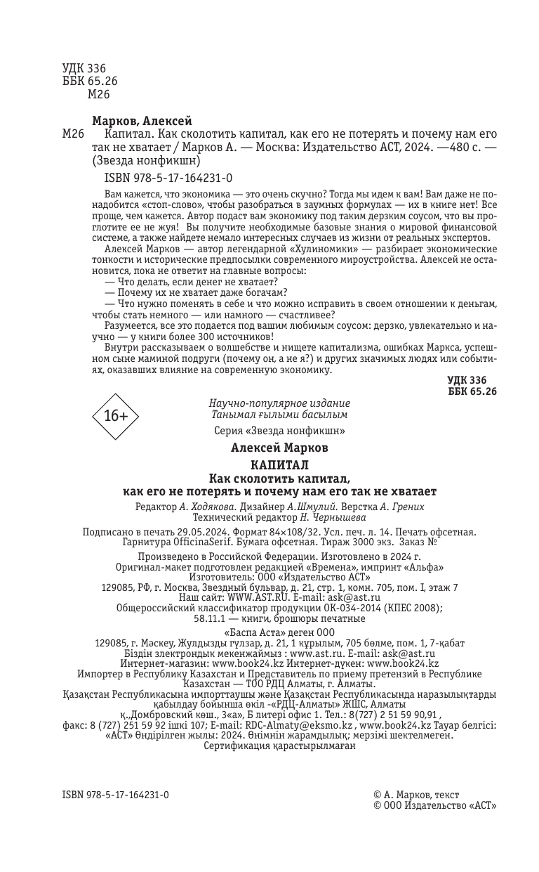Капитал. Как сколотить капитал как его не потерять и почему нам его так не хватает (Алексей Викторович Марков); АСТ, 2024