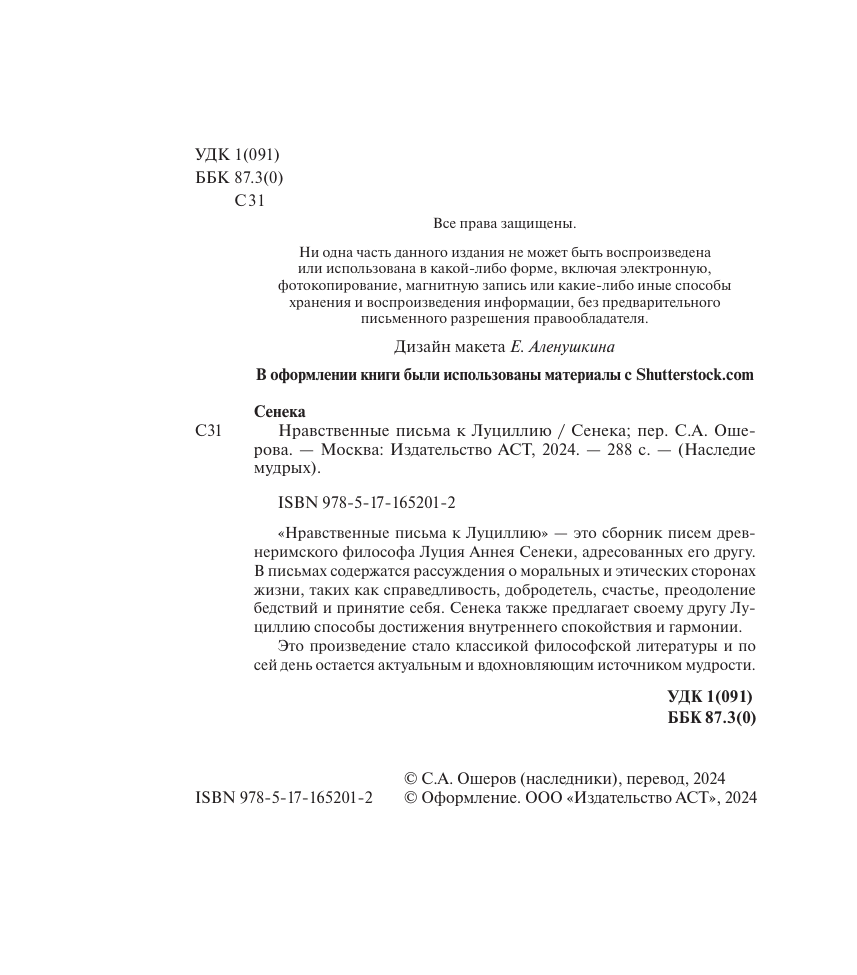 Сенека. Нравственные письма к Луциллию (Ошеров Сергей Александрович, Луций Анней Сенека); АСТ, 2025