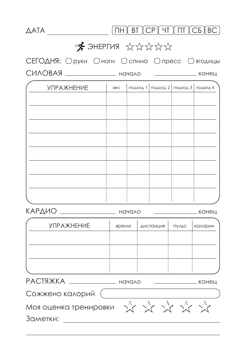 С этим дневником вы не просто тренируетесь — вы стремитесь к своим лучшим результатам, превосходя самого себя!