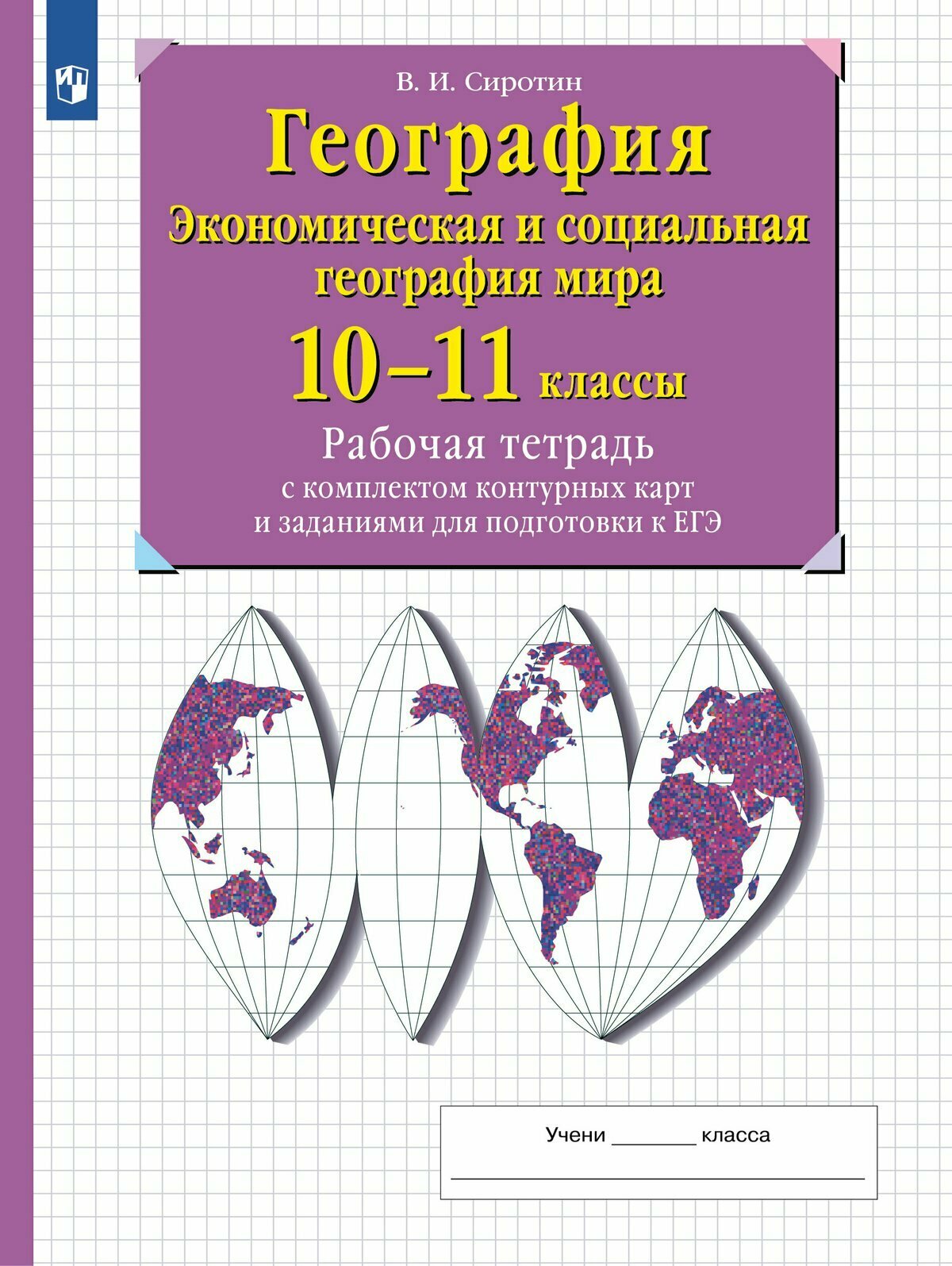 География. Экономическая и социальная география мира. 10-11 классы. Рабочая тетрадь с комплектом контурнымх карт и заданиями для подготовки к ЕГЭ (Владимир Иванович Сиротин); Просвещение, 2025