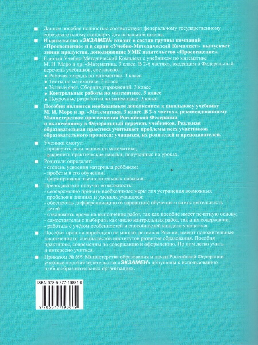 Математика. 3 класс. Контрольные работы по математике. К учебнику М. И. Моро и др. "Математика. 3 класс. В 2-х частях". Часть 1 (Виктория Наумовна Рудницкая); Экзамен, 2026