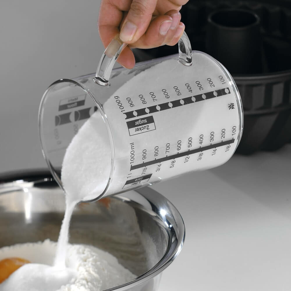 Четко следуйте рецепту, отмеряя точное количество ингредиентов мерной кружкой WMF.