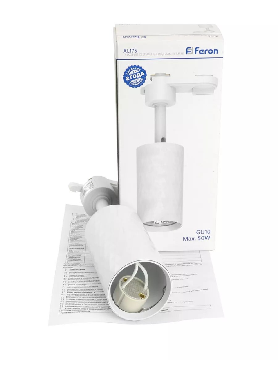 Трековые светильники AL174 TM FERON предназначены для использования со светодиодными лампами типоразмера MR16 и цоколем GU10. Это лучший вариант для создания акцентного освещения внутри помещения, они позволяют регулировать направление угла светового потока и расставить акценты на определённых деталях интерьера. Благодаря тому, что светильники можно легко перемещать по однофазному шинопроводу, трековая система получается мобильной и её можно установить на любой высоте (с помощью аксессуара CAB1002). Цветовая температура свечения и мощность зависит от установленной лампы. ОСОБЕННОСТИ: Удобство регулировки направления светового луча: светильник вращается на 350 по горизонтальной оси и на 90 по вертикальной оси Прочный и лёгкий алюминиевый корпус Простой монтаж и надежная фиксация Технические отверстия на задней стороне светильника для отвода тепла и продлевания срока службы лампы