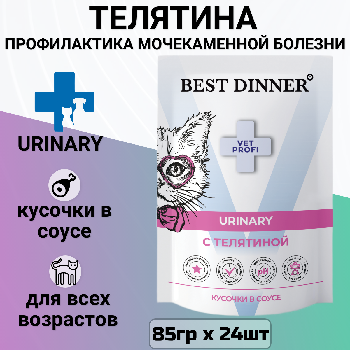 Сервис сравнения цен СкидкаГИД предлагает сравнить цены на товар «Best Dinner Vet Profi Urinary пауч для кошек профилактика МКБ (соус) (Курица 85 г.)»