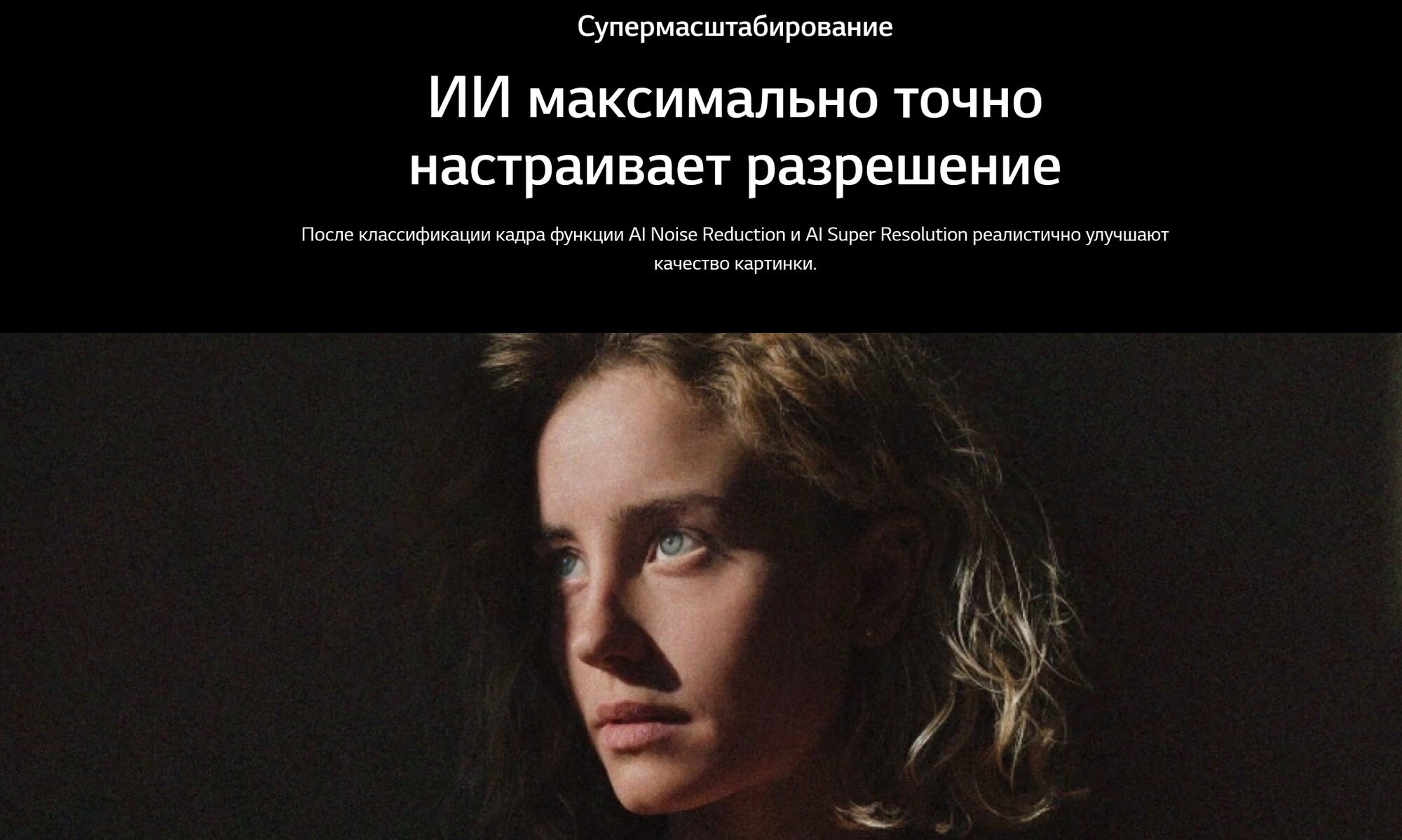 | Технологии | 4K Upscaling, AI Brightness Control, AI Sound Pro, Apple AirPlay 2, Clear Voice Pro, Dynamic Tone Mappng, LG Sound Sync, LG ThinQ, Local Dimming |