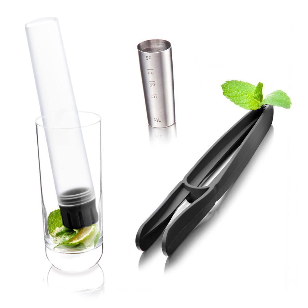 | Комплектация | В набор входит маддлер (пестик), специальные щипцы и джиггер (стальной мерный стаканчик. |
