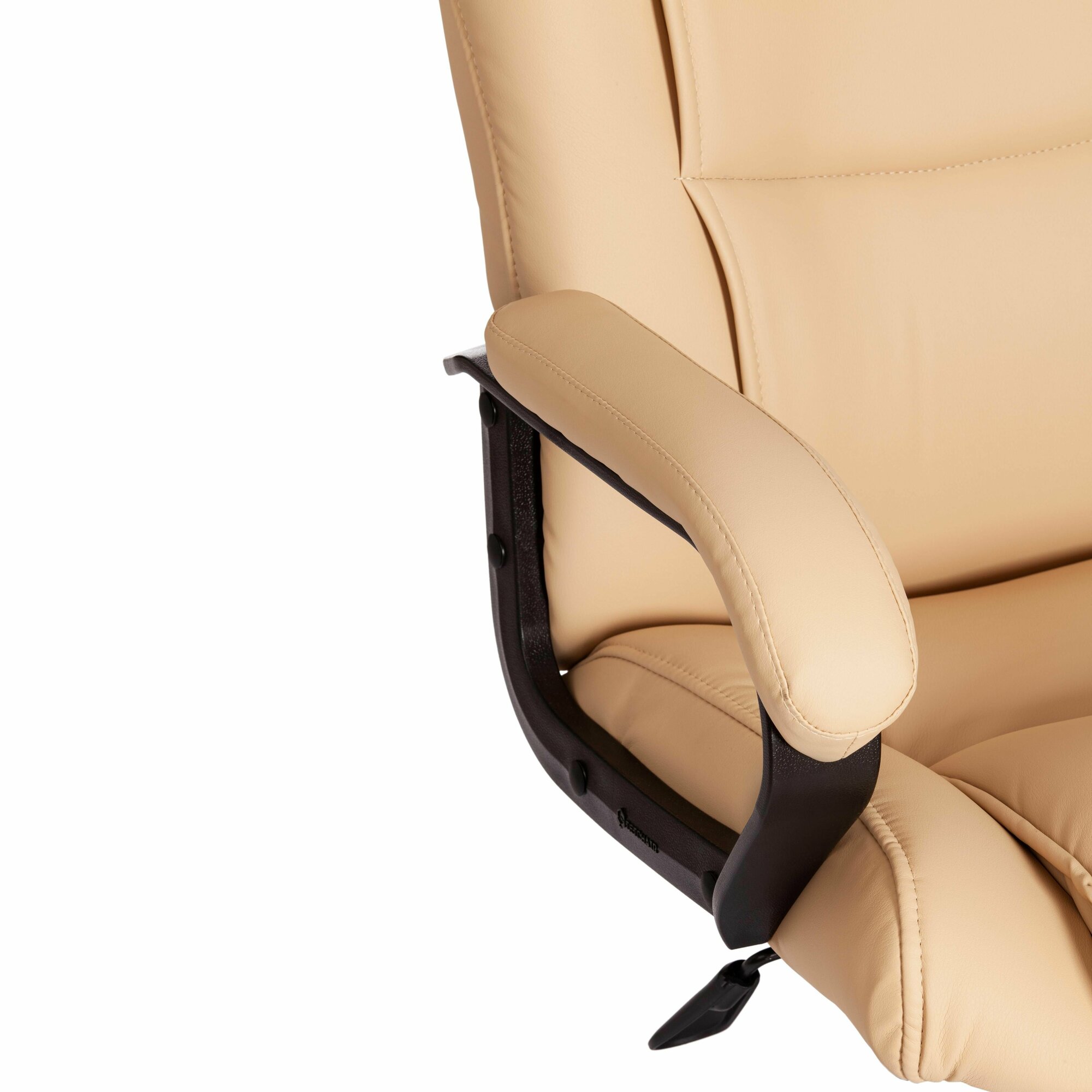 Кресла руководителя обладают материалом обивки, который представлен в виде экокожи. Экокожа - это искусственный материал, созданный на основе полиуретана. Полиуретановая обивка обеспечивает высокую прочность и долговечность кресла, а также приятное ощущение при сидении. Экокожа имеет эстетически привлекательный внешний вид, который напоминает натуральную кожу, однако она более доступна по цене и экологически безопасна.