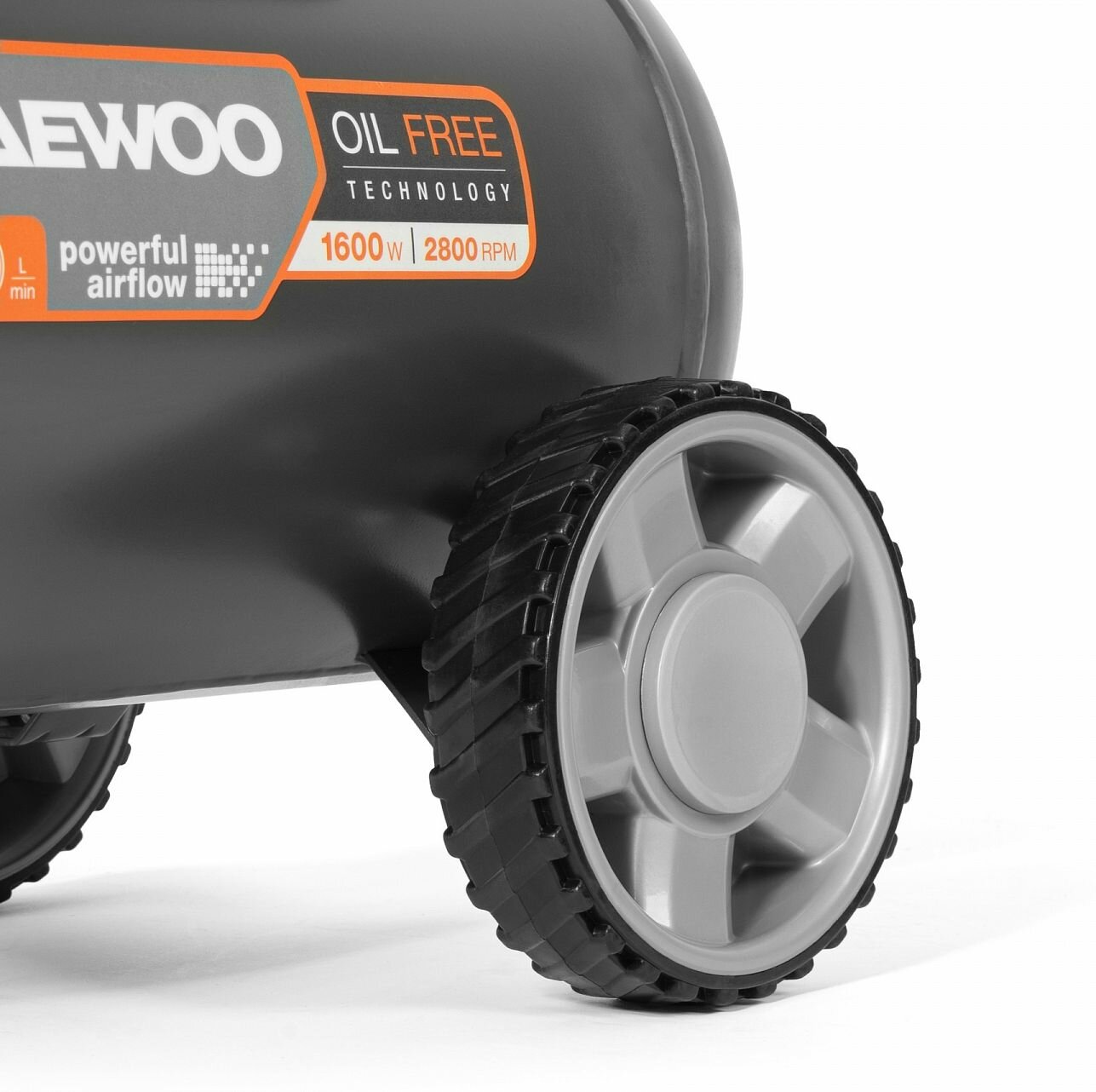 | Дополнительно | Бесщеточный двигатель DAEWOO Высокая производительность Эффективная система охлаждения 4 степени защиты на компрессоре Два манометра точной настройки выходного давления Два быстросъёмных выхода под ∎ дюйма Перекрывают подачу воздуха Складная рукоятка и транспортировочные колеса увеличенного диаметра. |
