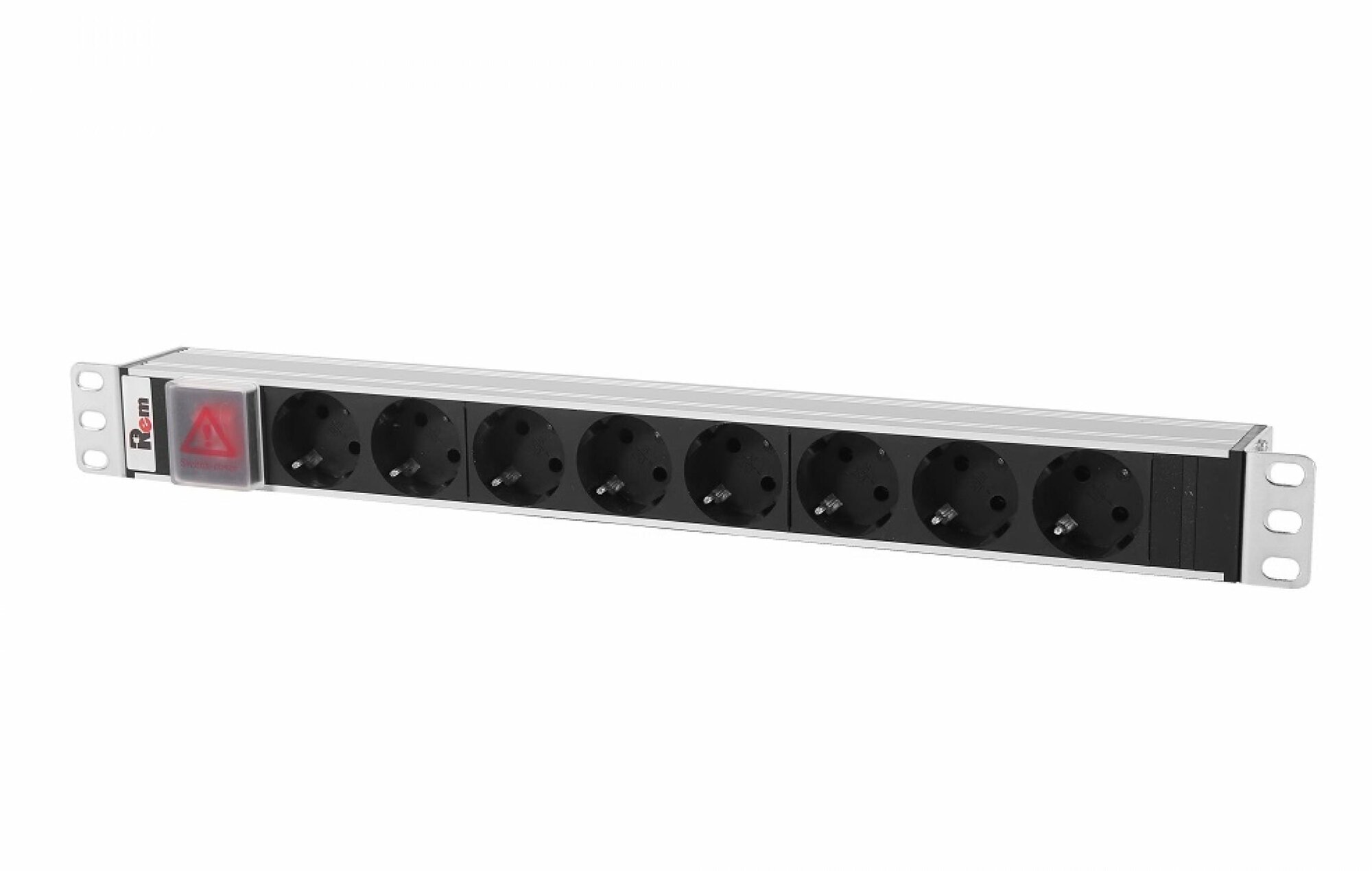 блок силовых розеток Rem-10 19" Shuko х 8 вход IEC 320 C14 1U10А выключатель без шнура ЦМО R-10-8S-V-440-Z