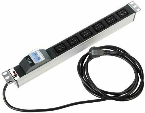 Блок силовых розеток имеет шесть портов стандарта IEC 60320 C19, выполнен в анодированном алюминиевом корпусе. Блок имеет автомат защиты 16А. Кабель питания 3 метра. Совместим со всеми линейками 19 монтажного оборудования. Поставляется в индивидуальной упаковке с комплектом крепежа. Выполнен в системе несущих конструкций 482,6 мм по ГОСТ 28601.2 (19-дюймовые конструктивы по МЭК 297).