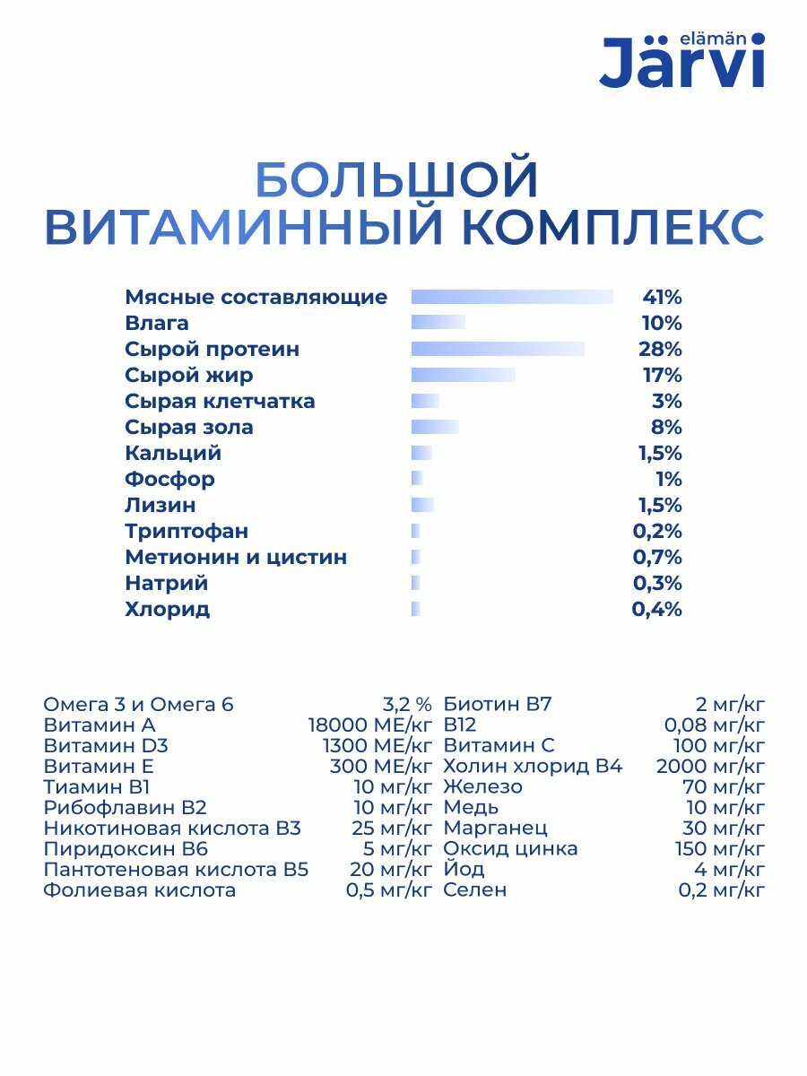 Сухой корм Jarvi для собак – это холистический, полнорационный корм для сбалансированного питания. Он соответствует высоким стандартам финского качества, разработан нутрициологами и одобрен ветеринарами. В составе корма присутствуют все необходимые витамины и микроэлементы для полноценного развития и здоровья вашего питомца. Естественные источники FOS, MOS и пробиотичесий комплекс обеспечивают хорошую усвояемость. Линейка кормов включает в себя несколько видов продуктов, которые можно подобрать под индивидуальные особенности вашего домашнего животного.