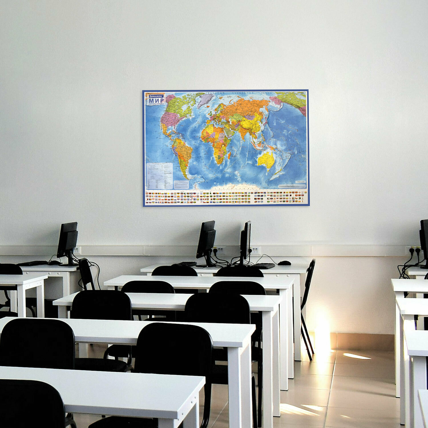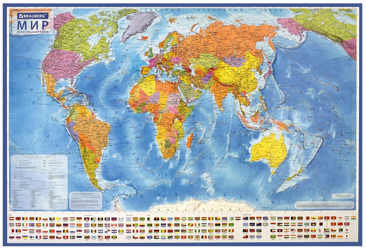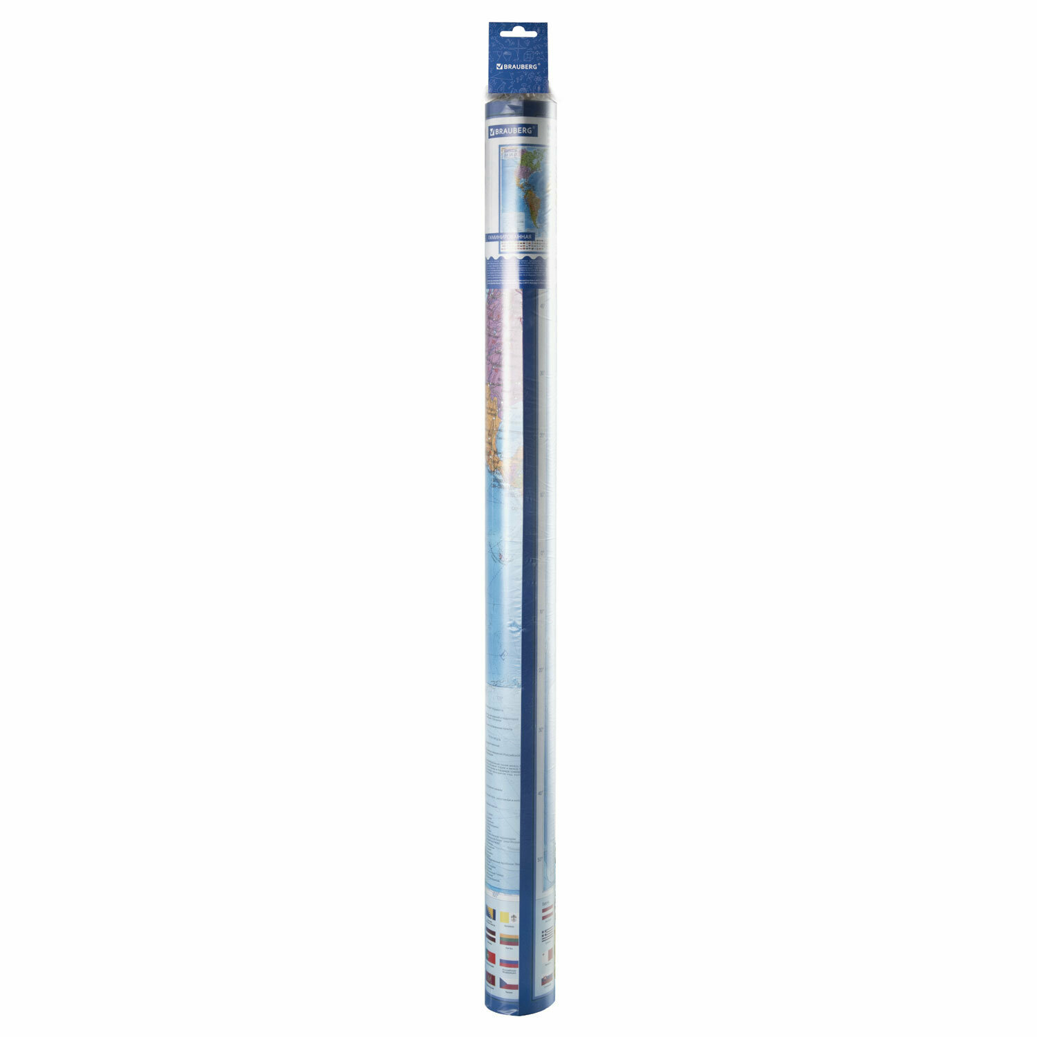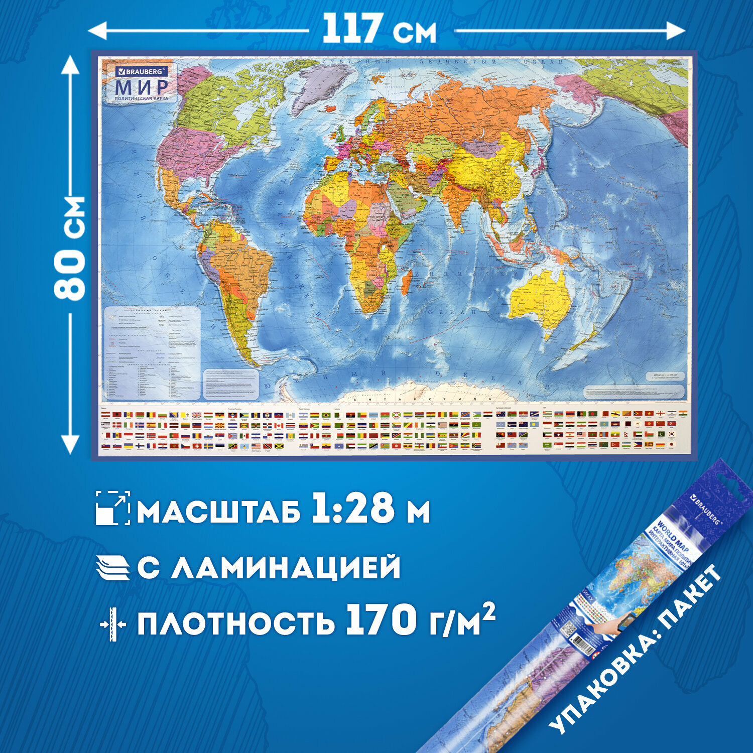 Карта мира Brauberg политическая 117х80 см 1:28М с ламинацией интерактивная 112384