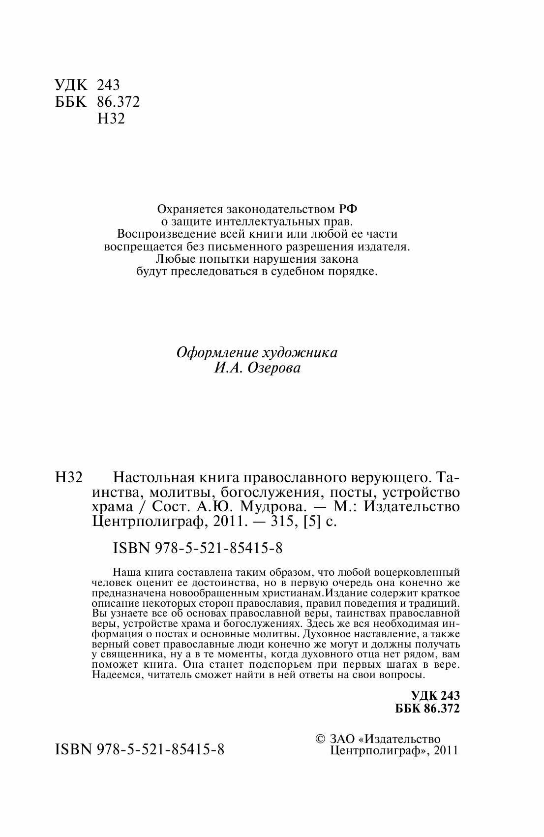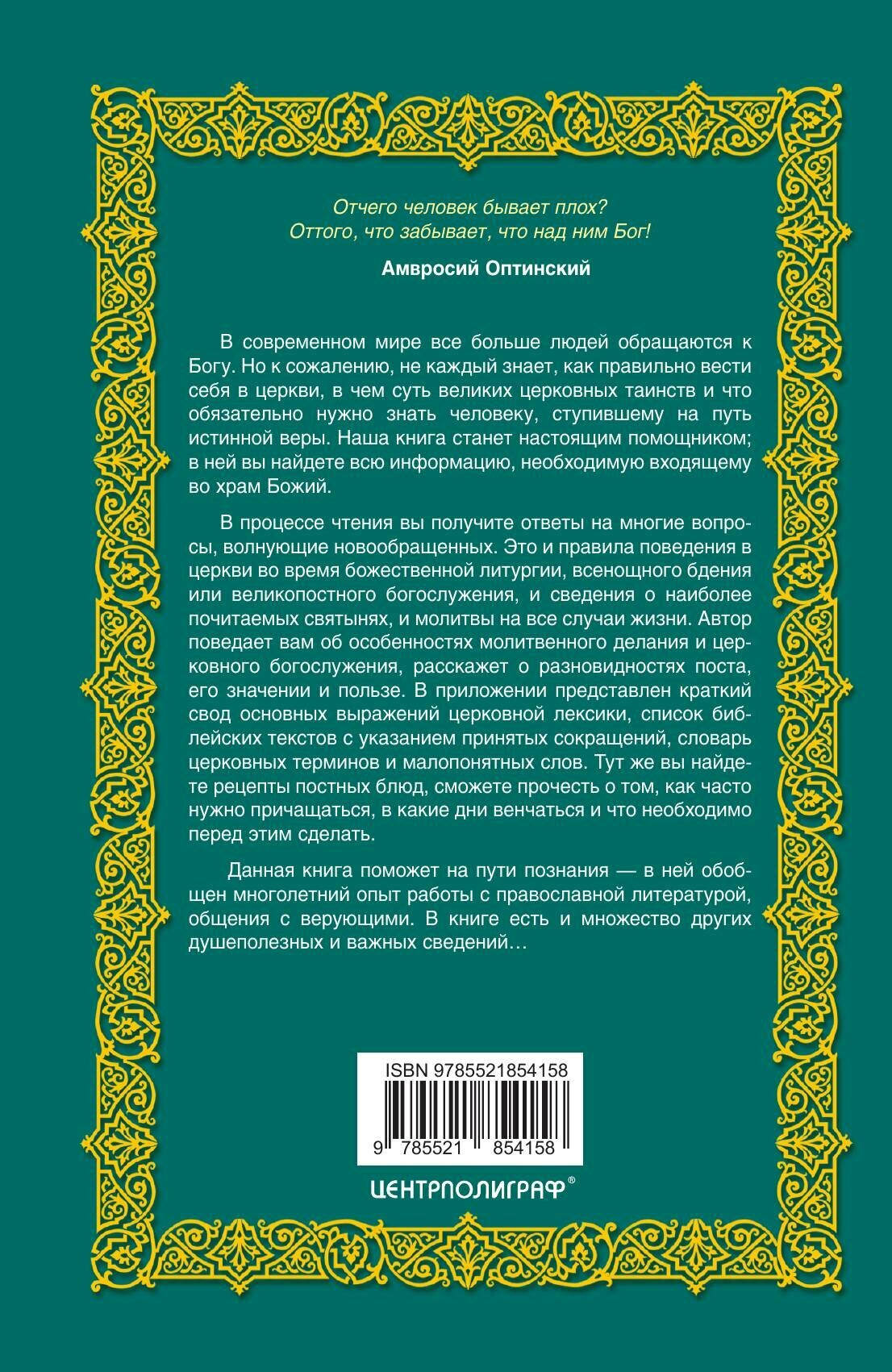 Наша книга составлена таким образом, что любой воцерковленный человек оценит ее достоинства, но в первую очередь она конечно же предназначена новообращенным христианам. Издание содержит краткое описание некоторых сторон православия, правил поведения и традиций. Вы узнаете все об основах православной веры, таинствах православной веры, устройстве храма и богослужениях. Здесь же вся необходимая информация о постах и основные молитвы. Духовное наставление, а также верный совет православные люди конечно же могут и должны получать у священника, ну а в те моменты, когда духовного отца нет рядом, вам поможет книга. Она станет подспорьем при первых шагах в вере. Надеемся, читатель сможет найти в ней ответы на свои вопросы.Издательство ЦентрполиграфМягкий переплетОбъем - 318 стр.Формат - 130x200 мм.ISBN 978-5-521-85415-8Год издания: 2022