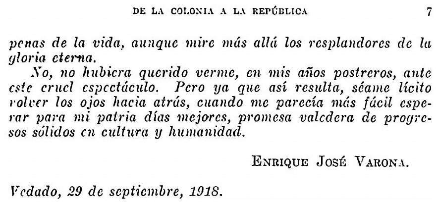 De la colonia a la republica (Enrique Jose? Varona)