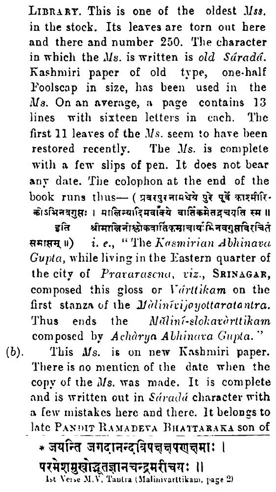 Sr Malinivijaya varttikam of Abhinava Gupta (Rajanaka Abhinavagupta)