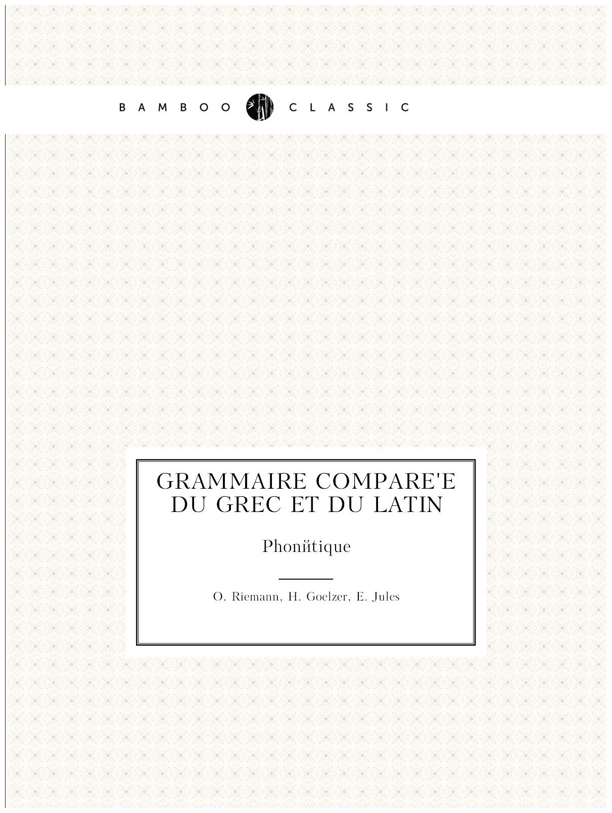 Grammaire compare?e du grec et du latin (O. Riemann, H. Goelzer, E. Jules)