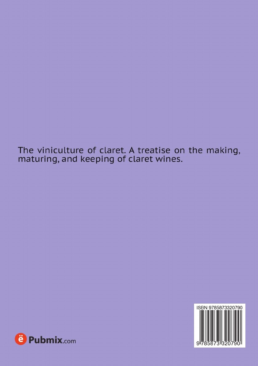 Эта книга - репринт оригинального издания (издательство "San Francisco, Cal. : Payot, Upham & Co.", 1884 год), созданный на основе электронной копии высокого разрешения, которую очистили и обработали вручную, сохранив структуру и орфографию оригинального издания. Редкие, забытые и малоизвестные книги, изданные с петровских времен до наших дней, вновь доступны в виде печатных книг.The viniculture of claret. A treatise on the making, maturing, and keeping of claret wines.Издательство Нобель ПрессМягкий переплетОбъем - 149 стр.Формат - 148x210 мм.ISBN 978-5-8733-2079-0Год издания: 2011