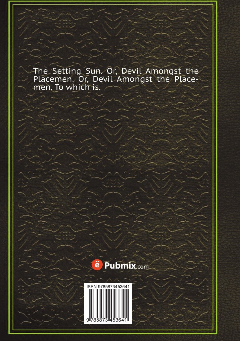 Эта книга - репринт оригинального издания (издательство "J.D. Dewick, for T . Hughes [etc.]", 1809 год), созданный на основе электронной копии высокого разрешения, которую очистили и обработали вручную, сохранив структуру и орфографию оригинального издания. Редкие, забытые и малоизвестные книги, изданные с петровских времен до наших дней, вновь доступны в виде печатных книг.The Setting Sun. Or, Devil Amongst the Placemen. Or, Devil Amongst the Placemen. To which is.Издательство Нобель ПрессМягкий переплетОбъем - 166 стр.Формат - 148x210 мм.ISBN 978-5-8734-5364-1Год издания: 2011