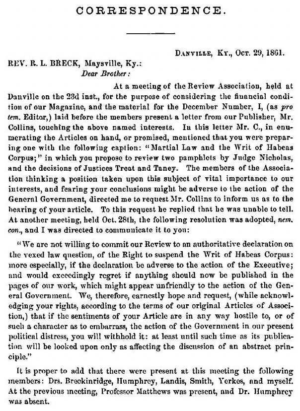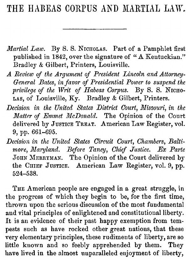 The Habeas Corpus And Martial Law (Robert L. Breck)