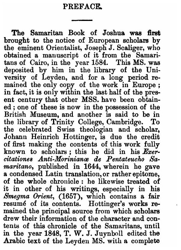 The Samaritan Chronicle or the Book of Joshua the son of Nun (O. Turnbull Crane)
