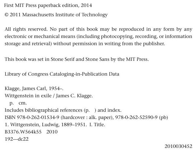 Книга: Wittgenstein in Exile (James C. Klagge)