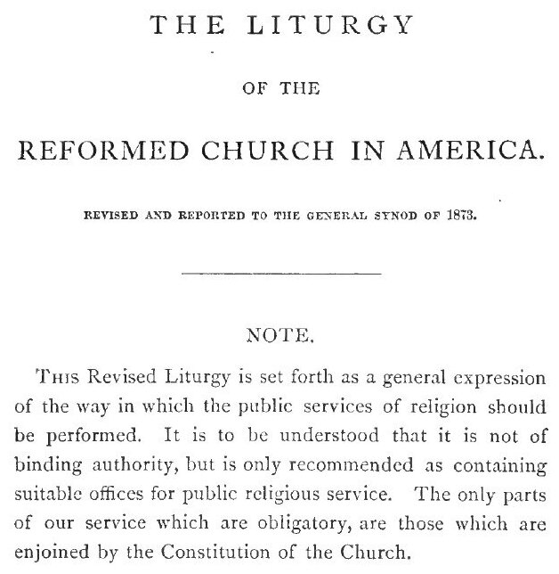 The liturgy of the Reformed Church in America (Reformed Church In America)