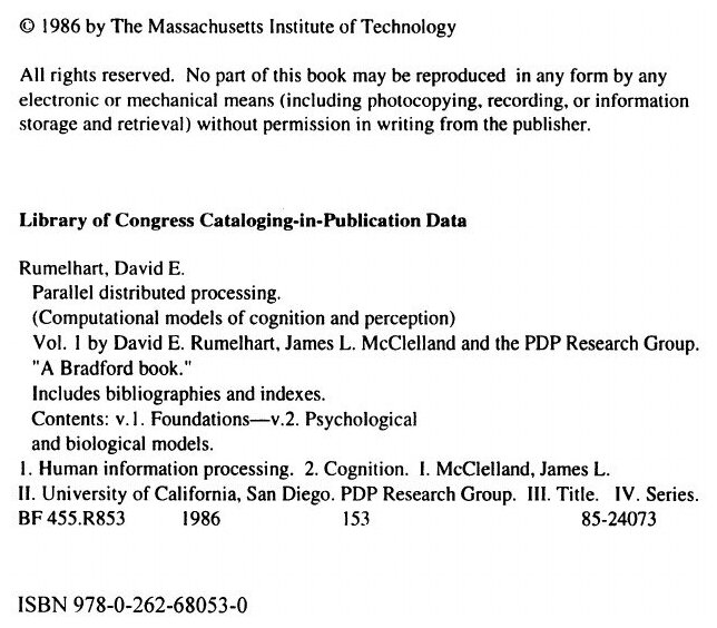 | Автор(ы) | David E. Rumelhart, James L. Mcclelland, PDP Research Group |