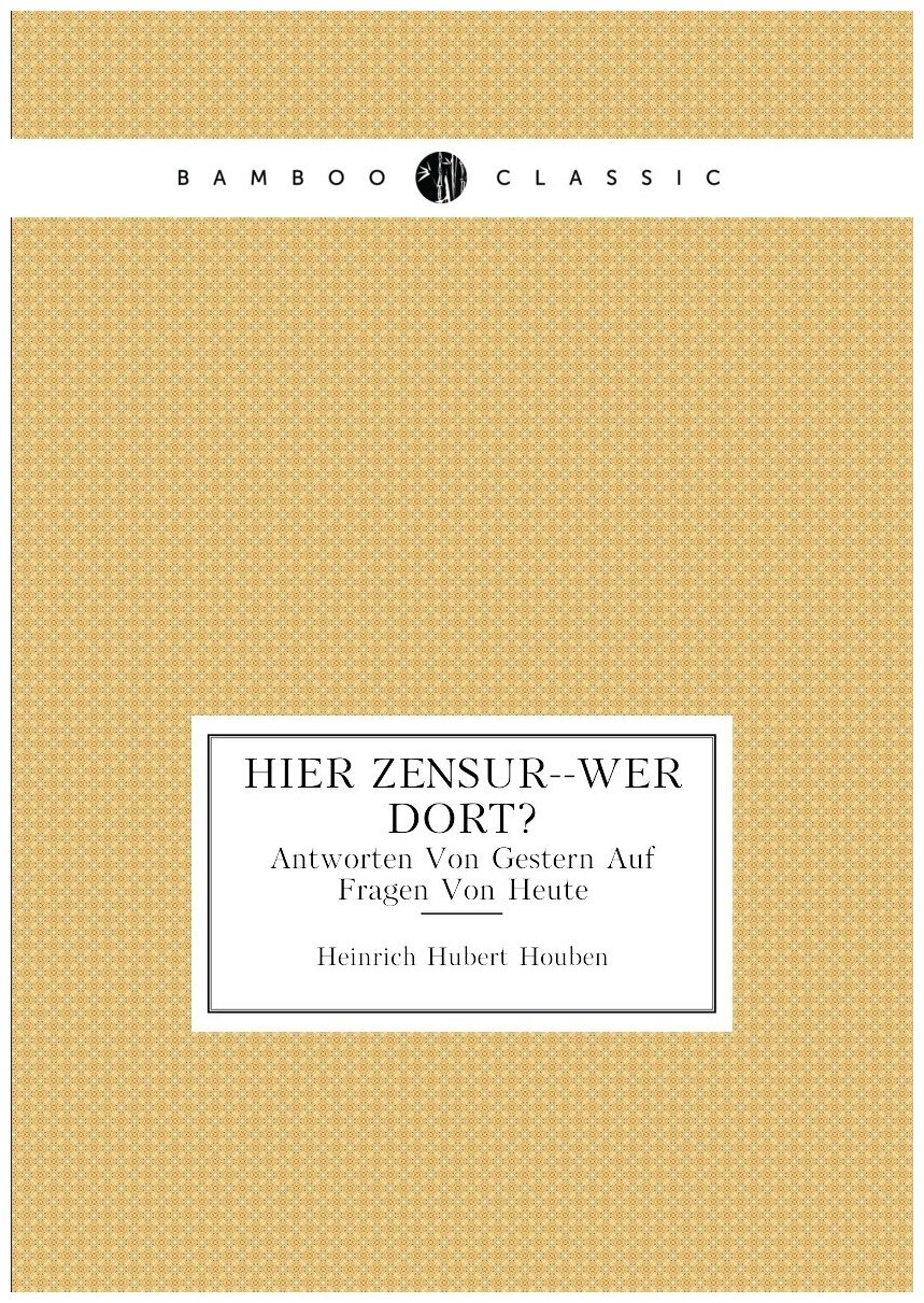 Книга: Hier Zensur--Wer Dort? (Heinrich Hubert Houben)