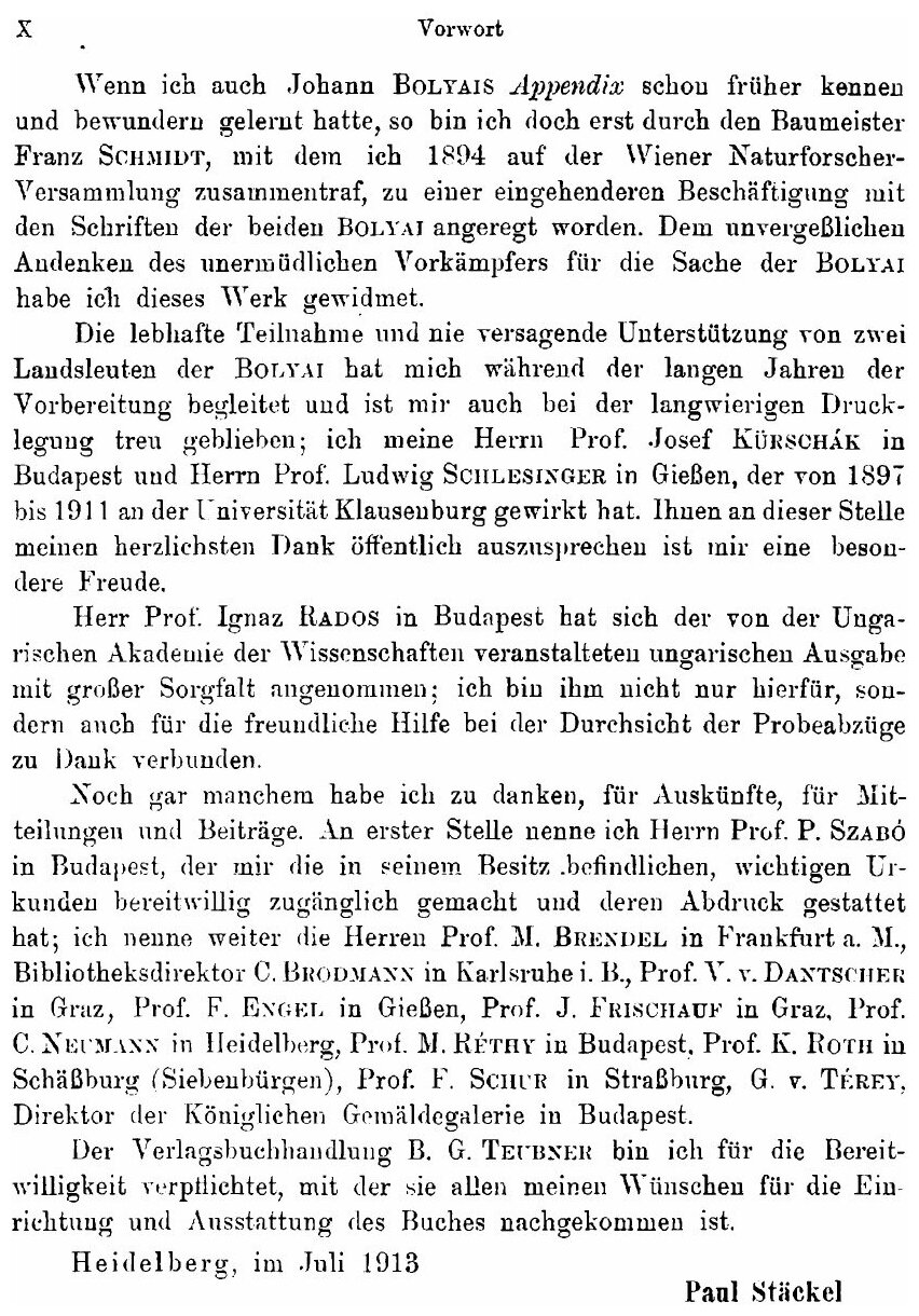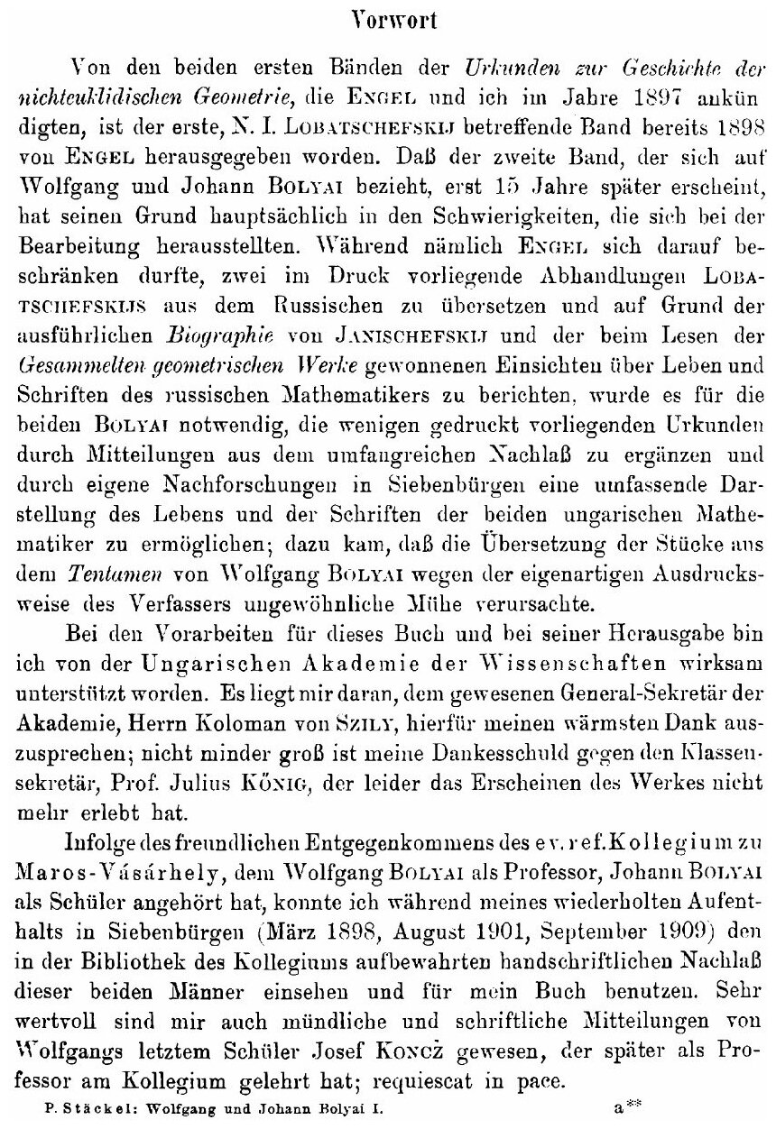 Wolfgang und Johann Bolyai Geometrische Untersuchungen (Paul Stackel)