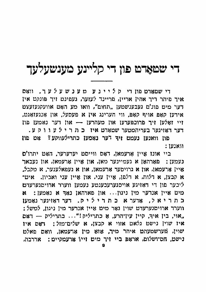 Kleyne menshelekh mit kleyne hasoges (Sholem Aleichem)