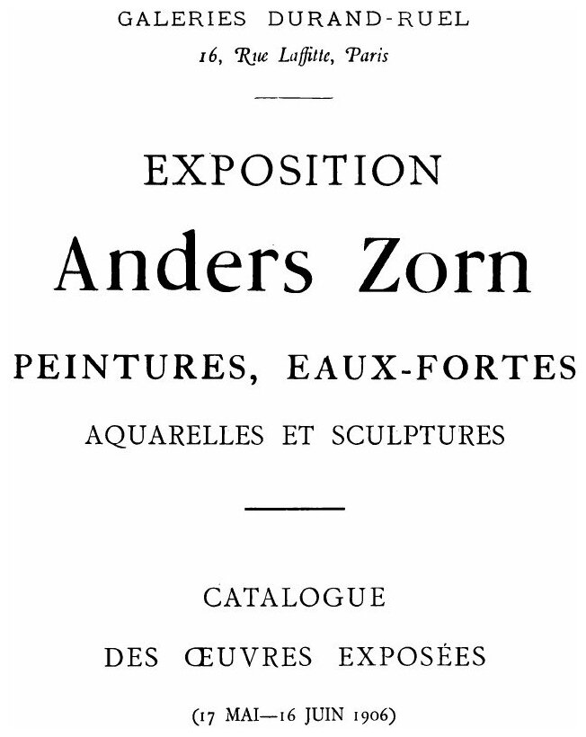 Exposition Anders Zorn: peintures eaux-fortes aquarelles et sculptures (Anders Zorn)