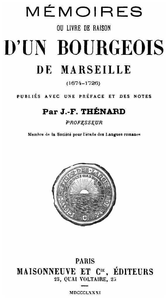 Memoires ou Livre de raison d'un bourgeois de Marseille (Jean Francois Thenard)