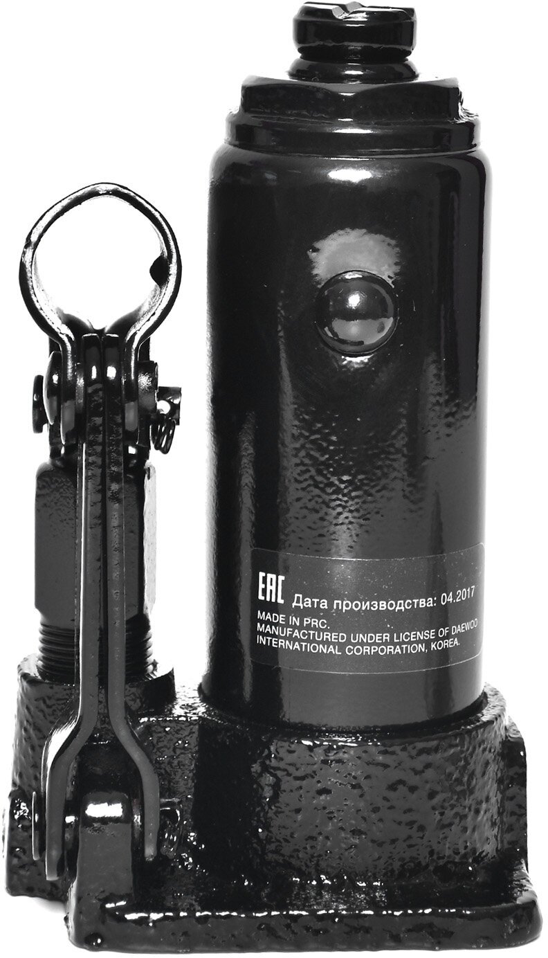 Гидравлический бутылочный домкрат DAEWOO предназначен для подъёма транспортных средств массой до двух тонн. Опорная площадка домкрата имеет насечку для предотвращения скольжения и снижает давящее усилие на днище автомобиля. Корпус с защитой от протечки предотвращает скопление воздушных пузырьков и повышает эффективность работы домкрата.