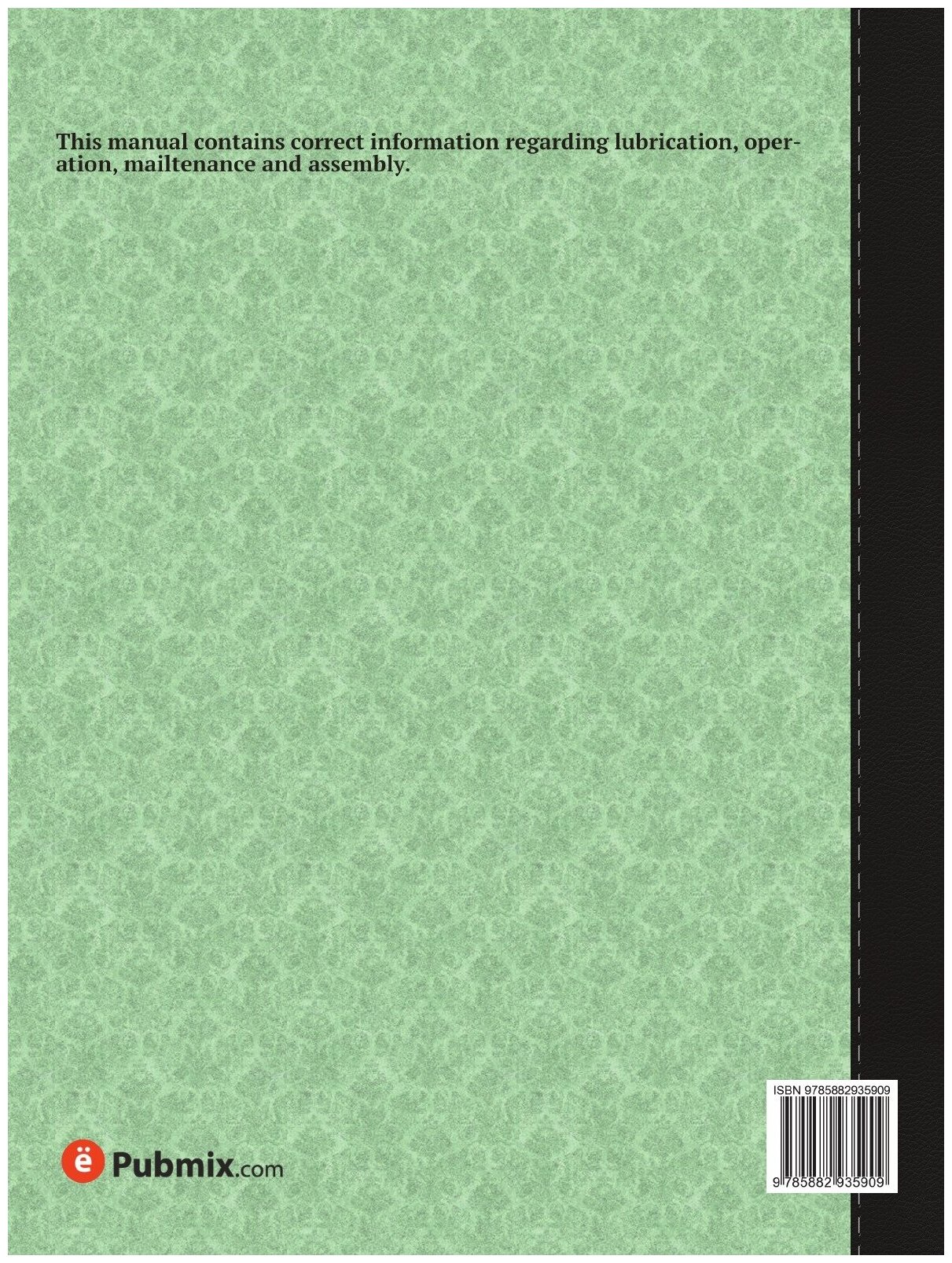Эта книга - репринт оригинального издания (издательство "Gerard Arthus", 1958 год), созданный на основе электронной копии высокого разрешения, которую очистили и обработали вручную, сохранив структуру и орфографию оригинального издания. Редкие, забытые и малоизвестные книги, изданные с петровских времен до наших дней, вновь доступны в виде печатных книг.This manual contains correct information regarding lubrication, operation, mailtenance and assembly.Издательство Нобель ПрессМягкий переплетОбъем - 52 стр.Формат - 210x280 мм.ISBN 978-5-8829-3590-9Год издания: 2012