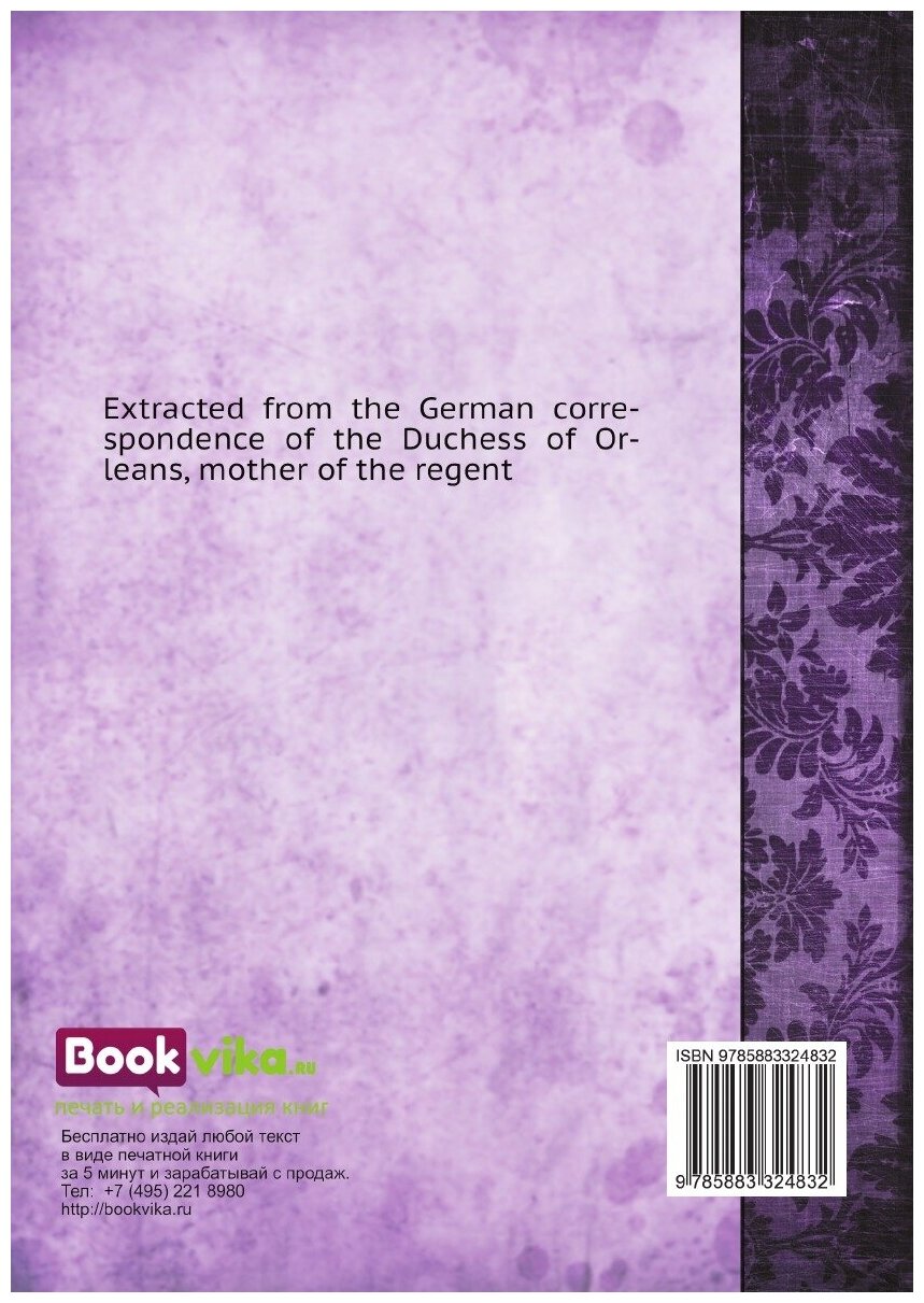 Эта книга - репринт оригинального издания (издательство "London, G. and W. B. Whittaker", 1824 год), созданный на основе электронной копии высокого разрешения, которую очистили и обработали вручную, сохранив структуру и орфографию оригинального издания. Редкие, забытые и малоизвестные книги, изданные с петровских времен до наших дней, вновь доступны в виде печатных книг.Extracted from the German correspondence of the Duchess of Orleans, mother of the regentИздательство Нобель ПрессМягкий переплетОбъем - 482 стр.Формат - 148x210 мм.ISBN 978-5-8833-2483-2Год издания: 2012