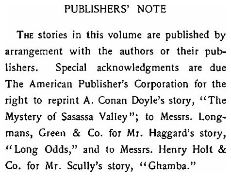 Эта книга - репринт оригинального издания (издательство "New York : Charles Scribner's Sons", 1896 год), созданный на основе электронной копии высокого разрешения, которую очистили и обработали вручную, сохранив структуру и орфографию оригинального издания. Редкие, забытые и малоизвестные книги, изданные с петровских времен до наших дней, вновь доступны в виде печатных книг.The Mystery of Sasassa Valley by A. Conan Doyle. Long Odds by H. Rider HaggardKing Bemba's Point by J. LandersGhamba by W. C. ScullyMary Musgrave by AnonymousGregorio by Percy HemingwayИздательство Нобель ПрессМягкий переплетОбъем - 224 стр.Формат - 148x210 мм.ISBN 978-5-8841-5238-0Год издания: 2012