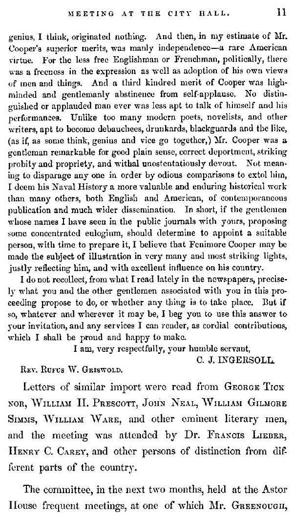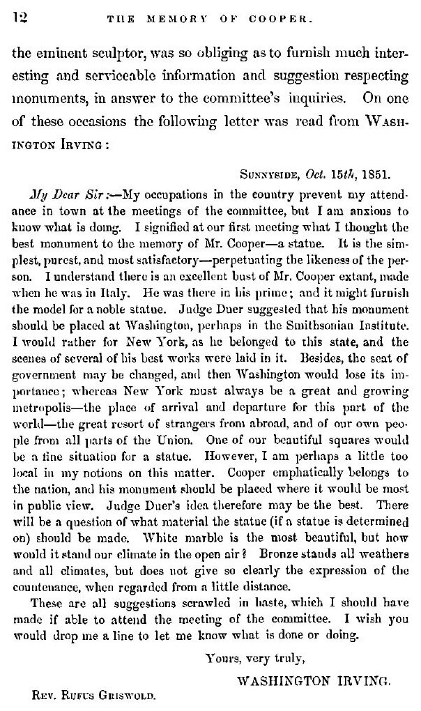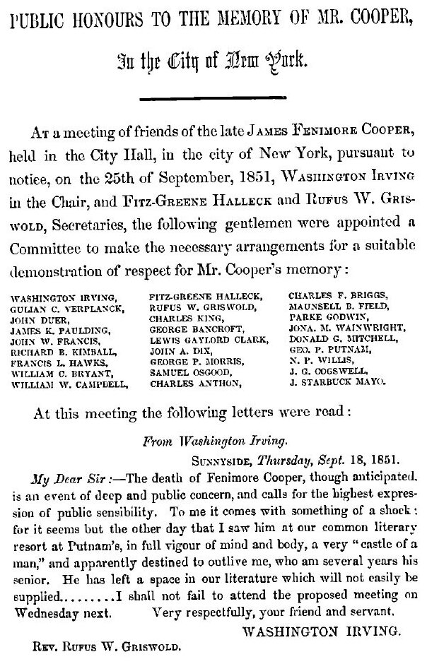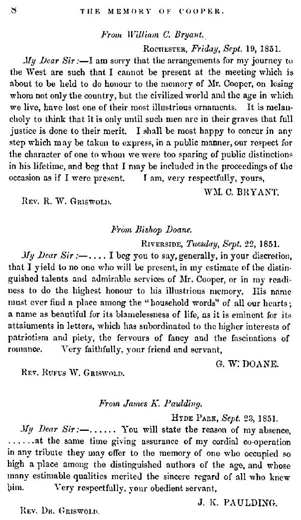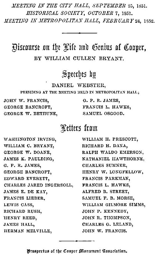 Memorial of James Fenimore Cooper (Bryant William Cullen)