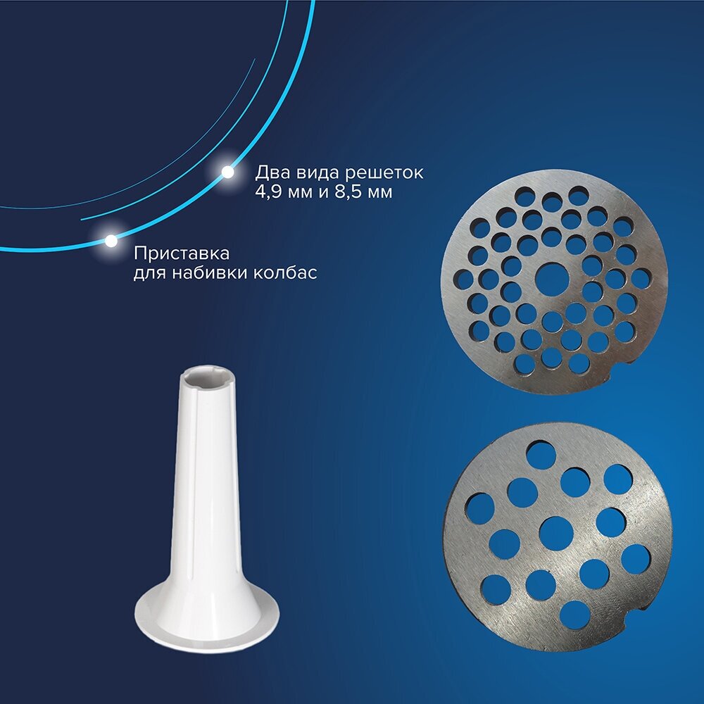 | Перфорированный диск для фарша | есть, 2 в комплекте, диаметр отверстий 5 мм, 7 мм |