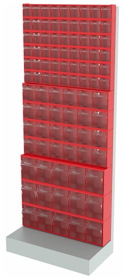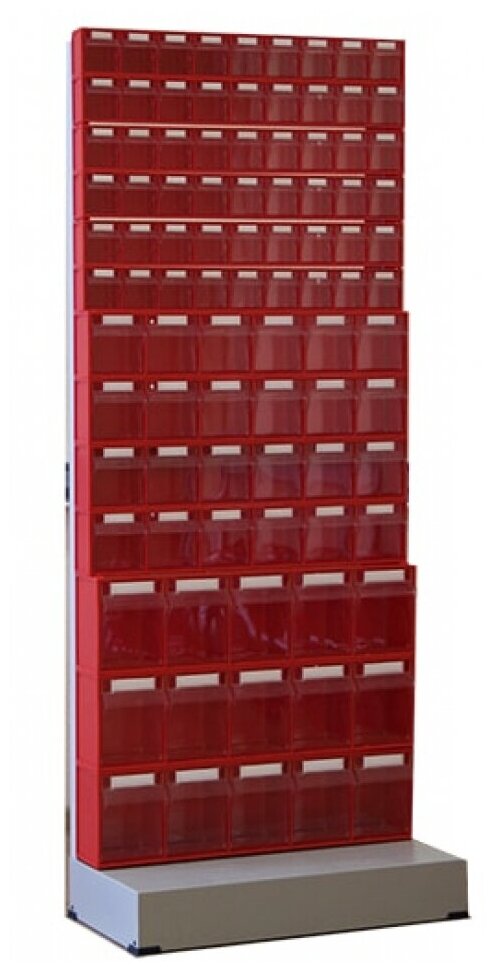 Стойка напольная Стелла-техник 403-06-04-03 (610х325х1500) представляет собой удобную систему хранения на основе откидных коробов. Стойка подойдет для выставочных залов, магазинов, офисов, складов. Комплектация: Рама FOX (610х325х1500) V403 напольная односторонняя с основанием - 1 шт; Короб откидной Стелла-техник F-600-9 , 600х68х78мм, 9 ячеек, красный, прозрачный - 6 шт; Короб откидной Стелла-техник F-600-6 , 600х96х112мм, 6 ячеек, красный, прозрачный – 4 шт; Короб откидной Стелла-техник F-600-5 , 600х140х168мм, 5 ячеек, красный, прозрачный – 3 шт; Упаковка. Преимущества: Металлическое основание; Значительная устойчивость; Хорошая вместимость; Длительный срок службы.