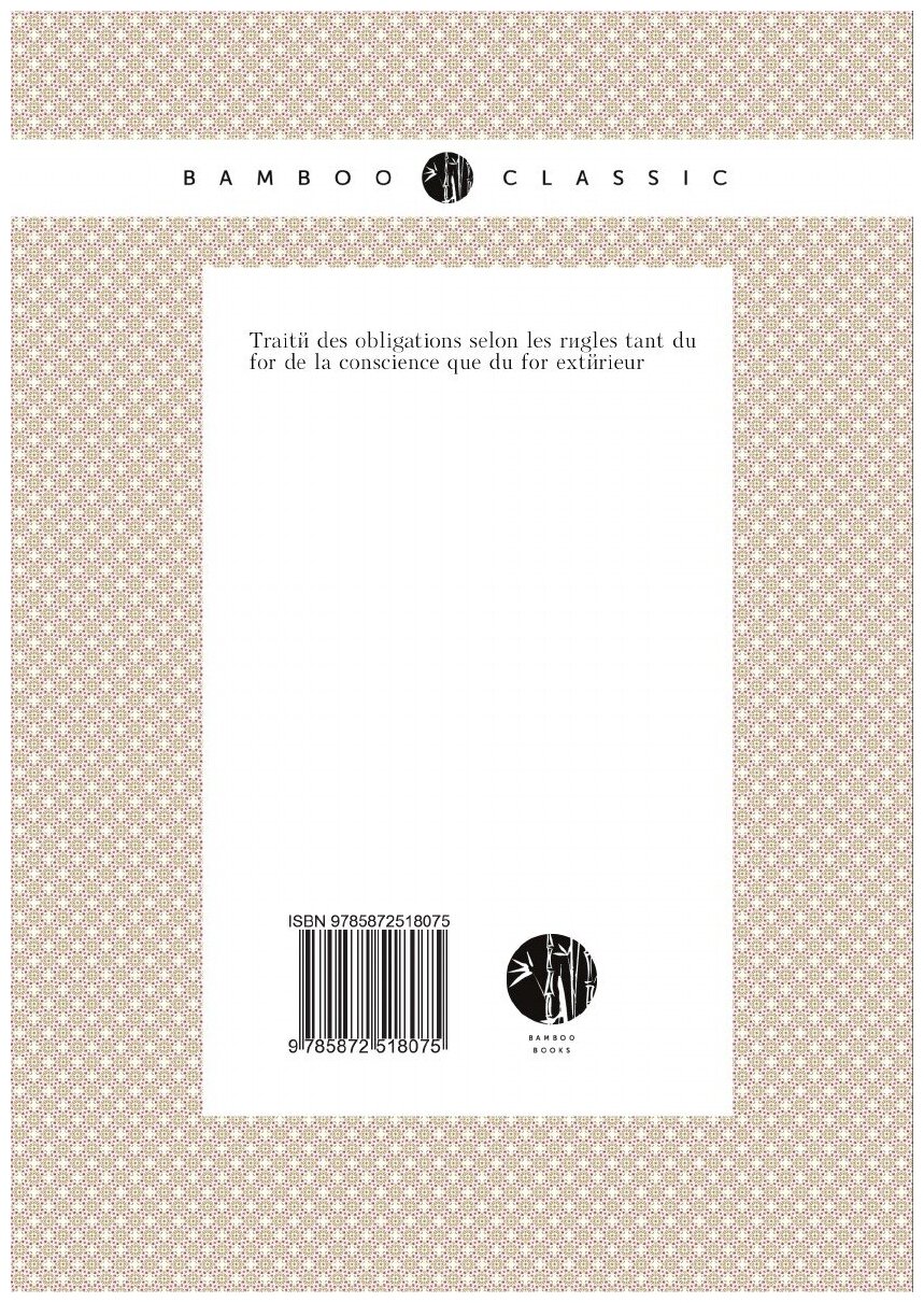 Эта книга - репринт оригинального издания (издательство "Paris : Debure", 1764 год), созданный на основе электронной копии высокого разрешения, которую очистили и обработали вручную, сохранив структуру и орфографию оригинального издания. Редкие, забытые и малоизвестные книги, изданные с петровских времен до наших дней, вновь доступны в виде печатных книг.Traite des obligations selon les regles tant du for de la conscience que du for exterieurИздательство Нобель ПрессМягкий переплетОбъем - 683 стр.Формат - 148x210 мм.ISBN 978-5-8725-1807-5Год издания: 2011