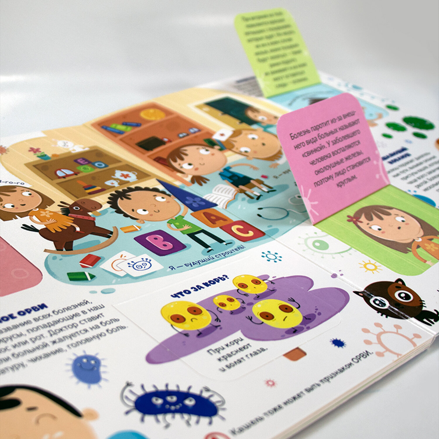 Книжки с окошками "Как устроен человек?", "Вирусы и бактерии" и "Почему мы болеем?" предназначены для любознательных детей. Яркие картинки и познавательные факты помогут познакомить малыша со строением тела и органов. Внутри книжки 6 красочных разворотов и 26 окошек разной формы, открывая которые, дети получат массу полезной и интересной информации. Книги знакомят ребенка с тем, зачем нам скелет, почему сердце бьется, как мы заболеваем и какие микроорганизмы живут внутри нас. В книге мы попытались собрать ответы на самые частые вопросы почемучек о нашем организме. В каждом окошке дополнительный факт! Книги сделаны из плотного картона с ламинированной обложкой. Окошки расположены на каждой странице! Рекомендуем самостоятельно открыть окошки перед тем, как давать книгу ребенку.