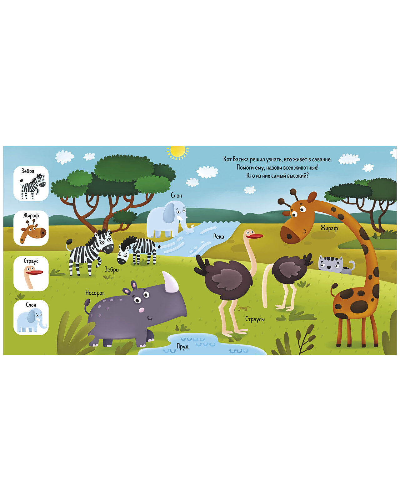 Однажды домашний кот решил отправиться в кругосветное путешествие и познакомиться с обитателями разных уголков Земли! Открывайте книгу и следите за его приключениями в лесах, горах, саванне, джунглях и даже на Северном полюсе! А ещё играйте в «найди и покажи» и изучайте удивительный и разнообразный мир животных!