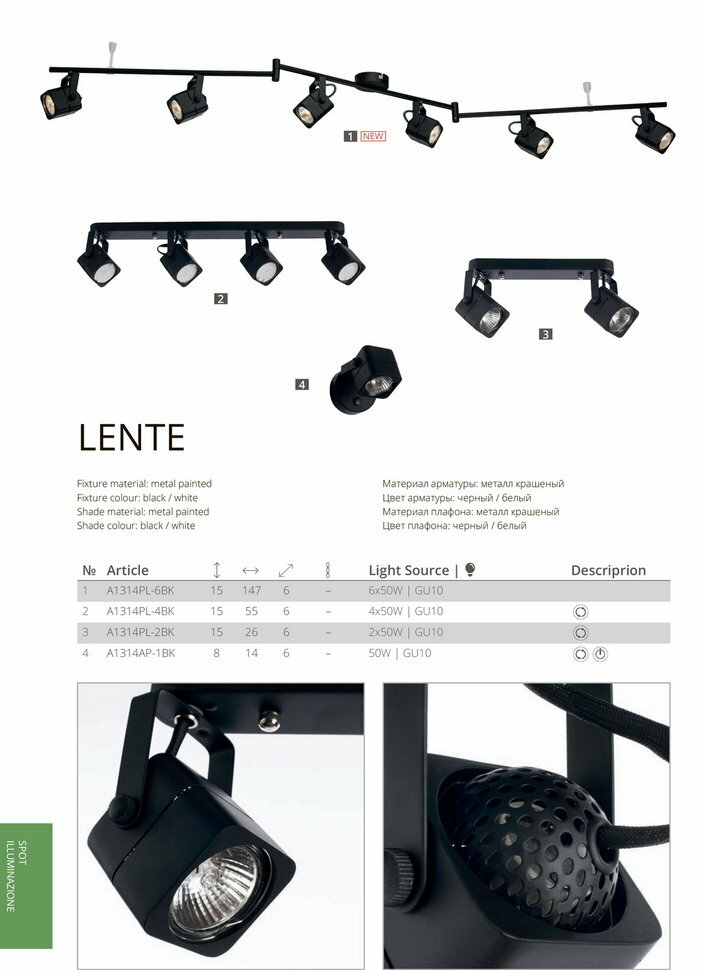 - Видеообзор Arte lamp A1314AP-1BK LENTE