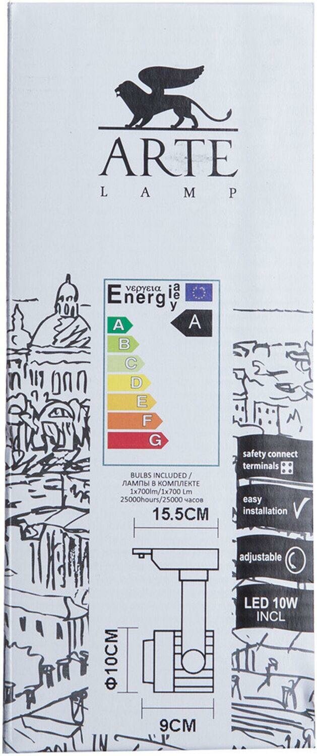 Трековый светильник однофазный 220V светодиодный - продукт известной компании Artelamp (Италия). Имеет максимальную мощность 10 Вт, освещает площадь до 2 кв. м. Впишется в интерьеры следующих стилей: техно.