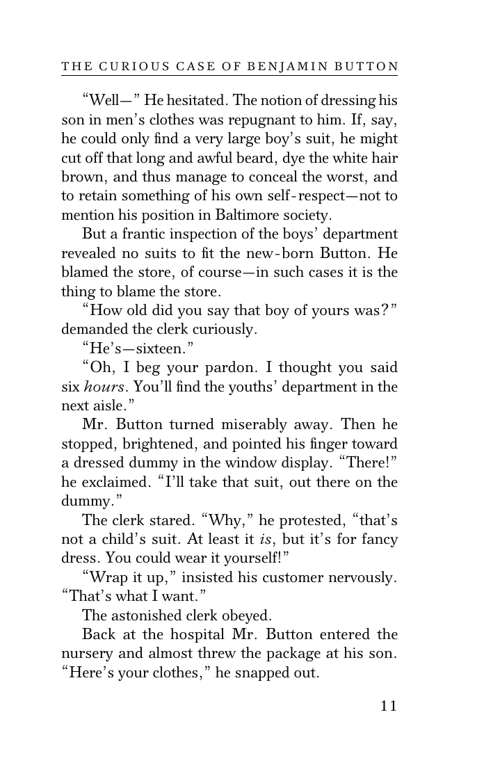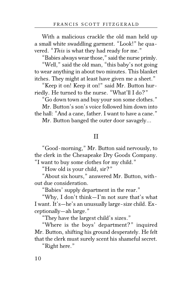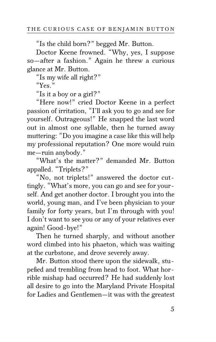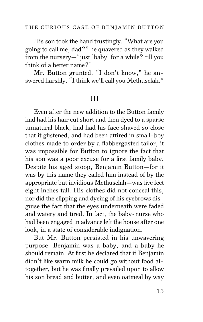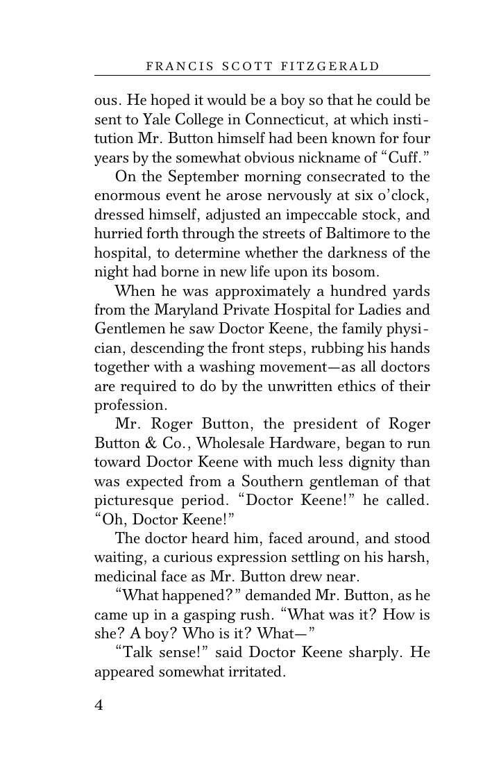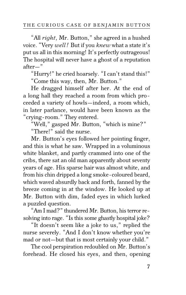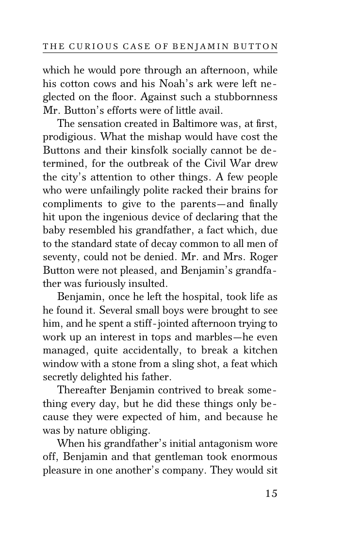 "Загадочная история Бенджамина Баттона", экстравагантная насмешка над старением, является одним из самых известных рассказов Ф. Скотта Фицджеральда.