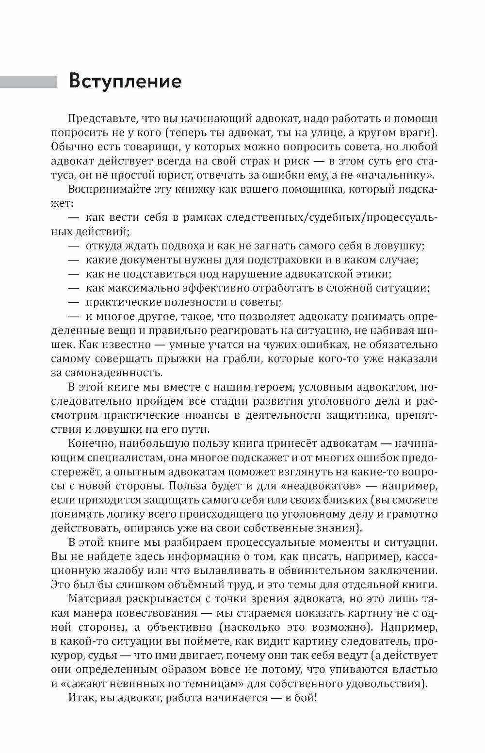 Книга подходит начинающим и опытным адвокатам, а также тем, кому необходимо защитить себя или своих близких.